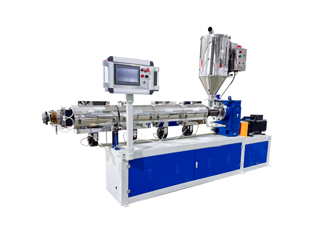 真正不認(rèn)料的PLA吸管擠出機(jī)、長(zhǎng)徑比33:1、采用BM分離型+菠蘿釘專利螺桿